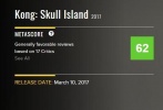 其他網(wǎng)站方面,Metacritic上MTC目前收錄15篇影評(píng),媒體評(píng)分是62,與爛番茄上基分保持同一水平;TOP評(píng)價(jià)暫無。《金剛:骷髏島》將于3月24日以2D、3D、IMAX3D、中國巨幕3D、杜比全景聲、杜比視界、臨境音制式登陸全國院線,讓國內(nèi)影迷一飽眼福。