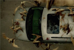 主角團有情有義,逃亡時仍不忘帶上愛犬。他們似乎沒有意識到,狗雖然是人類最好的朋友,但在漫天異獸循聲捕獵的末世,飼養(yǎng)寵物無異于隨身一顆不知何時就會突然引爆的炸彈。果不其然,在預告片中,一聲狗吠在寂靜的郊區(qū)響起,蝠蜂瞬間俯沖,猛烈撞擊車窗,將一家人困在車中。他們究竟怎樣才能逃出生天也是先前預告留下的懸念之一。