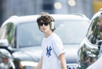1905電影網(wǎng)訊 當(dāng)?shù)貢r(shí)間2023年7月26日,“甜茶”蒂莫西·柴勒梅德身穿Aaron Judge Yankee的T恤,搭配牛仔褲和頭戴耳機(jī),以清爽造型現(xiàn)身紐約街頭。甜茶在一家披薩店買完披薩后邊走邊吃,十分瀟灑愜意,即使臉上蓄著胡茬,也難擋陽(yáng)光帥氣。