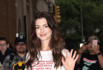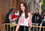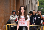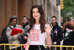 1905電影網(wǎng)訊 當(dāng)?shù)貢r間2023年10月6日,美國紐約,安妮·海瑟薇現(xiàn)身紐約上西區(qū)ABC電視臺的《The View》。當(dāng)天,安妮·海瑟薇身穿白色短袖T恤,搭黑色皮裙亮相,長發(fā)披肩造型搭配精致妝容,優(yōu)雅有氣質(zhì)。面對圍觀的粉絲,安妮親切招手,露出迷人的燦爛笑顏。