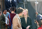 1905電影網(wǎng)訊 當?shù)貢r間4月9日,美國帕特森,“甜茶”提莫西·查拉梅和艾麗·范寧現(xiàn)身傳記片《完全未知》拍攝片場。二度合作的兩人在片場有說有笑,默契十足。兩人演繹出的甜蜜氛圍,仿佛夢回到5年前《紐約的一個雨天》中。