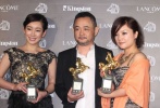 當?shù)貢r間11月26日,第48屆臺灣電影金馬獎頒獎典禮后臺,各個獎項的逐一揭幕,獲獎明星手持獎杯在后臺與大家共同分享勝利的喜悅。 圖為:《到阜陽六百里》編劇。