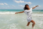 西班牙超模格雷西·卡瓦略海邊縱情寫真秀健康膚色,背部秀中文紋身另類性感。