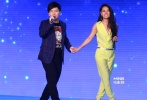 袁婭維深V連身褲時(shí)尚出場(chǎng) 牽手常石磊默契獻(xiàn)唱