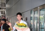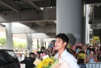 > 金秀炫到港粉絲瘋狂接機獻花 陽光親和揮手致意