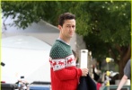 在門廊相擁熱吻,而在另一張片場照中,“囧瑟夫”的小鹿套頭衫也與圣誕節(jié)題材遙相呼應(yīng)。