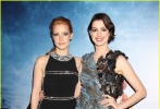“勞模姐”杰西卡·查斯坦曾經(jīng)盛裝出席過多次活動,這次宣傳《星際穿越》也不例外,黑色長裙剪裁利落,凸顯出杰西卡的曼妙身姿。而安妮·海瑟薇穿著一件無袖拼接短裙,密密麻麻的綴飾讓她顯得有些臃腫,但兩人的合影依然引來許多影迷舉起手機拍照,兩位當(dāng)紅女演員同場出現(xiàn)實在不可多得。