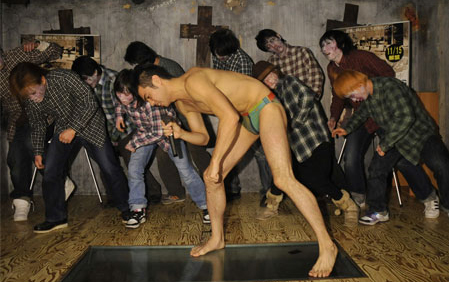 為配合劇情,日本笑星小島葦子攜新成立的組合“搞笑10人組”登場。小島葦子一身接近裸體裝束亮相舞臺,其他成員則以模仿電影中“復(fù)活死人”的裝束出場,小島葦子在現(xiàn)場幽默調(diào)侃:“此片講的是死人復(fù)蘇的事,我也好比死人一樣,去年沉寂,今年又‘復(fù)蘇’了。