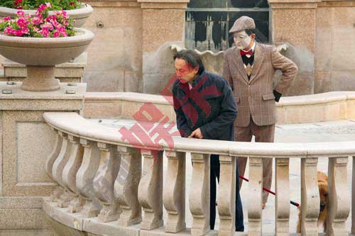 在休息間隙,葛優(yōu)想坐在石凳上,工作人員趕緊拿軍大衣,墊在上面,怕涼了貴臀,一個(gè)小弟從其他地方快速跑來(lái)送紙杯,讓葛優(yōu)喝點(diǎn)熱水,身后還有人說(shuō),快,快,跑起來(lái)。葛大爺?shù)拇笸笈深^從這些細(xì)節(jié)中就能略見(jiàn)一斑。葛優(yōu)腕大,但為人脾性溫和,在等布光的時(shí)候,還不停用手摩挲金毛的后背,口中念念有詞,也許正在與狗交流,后來(lái)他干脆站起來(lái),用指頭比劃數(shù)字,訓(xùn)練有素的狗就按照數(shù)字叫起來(lái)了。