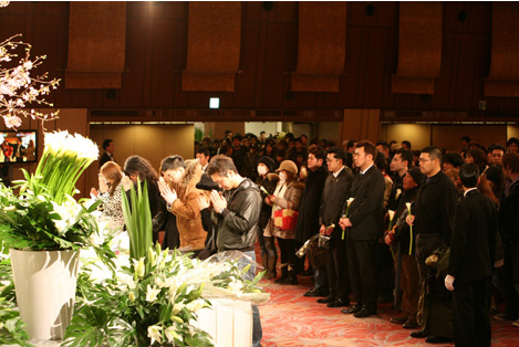 在藝人悼念專場結(jié)束后,下午一點左右,會場向社會正式開放。當天涌入影迷近千人,大家有秩序地排隊入場,每個人都手拿鮮花,向飯島愛獻上最真誠的祈愿,祝福她一路走好。