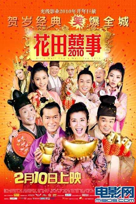 古裝賀歲喜劇《花田囍事2010》于今日(2月10日)開(kāi)始在全國(guó)公映。這部影片集合了香港喜劇教父黃百鳴、喜劇一姐吳君如、古天樂(lè)、鄭中基及名模熊黛林、Angelababy、內(nèi)地小生潘粵明等明星,將在虎年新春為觀眾奉上一道港味十足的喜劇饕餮大餐。