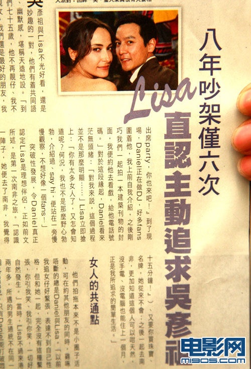2010年4月17日香港媒體爆料,吳彥祖已與女友Lisa S已于4月6日在南非舉行婚禮,相戀8年的吳彥祖與女友向該媒體報(bào)喜,Lisa S在南非擁有一處別致的房子,二人遂決定在附近的森林里舉行婚禮,二人的婚禮由當(dāng)?shù)氐脑∶裰鞒?,身穿西式服裝的二人在進(jìn)行簡(jiǎn)單的儀式后結(jié)為夫婦?!?br />