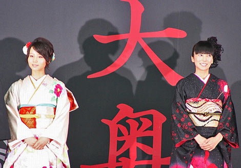 身著一襲黑紅相間驚艷和服的柴崎幸,頗具女將軍的威嚴(yán)風(fēng)范,柴崎表示扮演女將軍吉宗,令她深刻體會到作為一名權(quán)勢者,面對國家未來、國民安危的重大責(zé)任感,帶給她從未有過的演戲體驗(yàn)。而身著白粉色牡丹和服的堀北,始終站在一旁默默聆聽,成為一個(gè)名副其實(shí)的陪襯綠葉。
