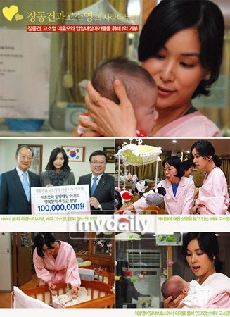 據(jù)韓國(guó)社會(huì)福祉會(huì)工作人員透露,高小英于15日下午來(lái)到位于首爾驛三洞的韓國(guó)福祉會(huì),以自己和張東健的名義捐贈(zèng)了1億韓元,用于幫助未婚媽媽和被遺棄的嬰兒。之后高小英還到訪首爾嬰兒保護(hù)所,親自為被遺棄的嬰兒們喂牛奶,并哄他們睡覺(jué)。張東健當(dāng)初也打算與高小英一起參加捐贈(zèng)儀式并一起訪問(wèn)嬰兒保護(hù)所,不過(guò)因?yàn)橐矫绹?guó)參加影片宣傳,只得讓高小英代表自己獻(xiàn)愛(ài)心。