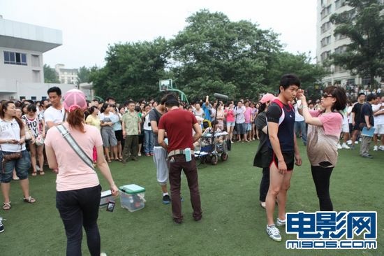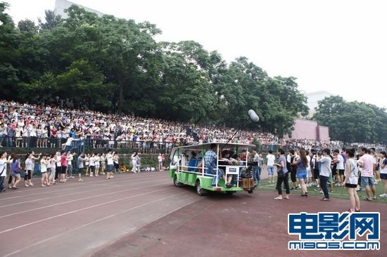 一位劇組工作人員透露:“這部電影一直在重慶取景拍攝,今天這場戲原本只安排了幾名學校保安負責保衛(wèi)工作,沒想到圍觀的學生越來越多,陸毅和景甜走到任何地方都會被影迷狂追,還有幾個女生為了跟明星‘親密接觸’,被警察追著跑了大半個操場?,F場尖叫聲太大,連導演喊開機都快聽不見了。”為了維持秩序,校方請來了超過100名警察和保安守在拍攝現場,5輛警車隨時待命。參與“圍觀大軍”的學生也是第一時間發(fā)微博直播:“運動場上擠了好幾千人,陸毅和景甜會被這個陣仗嚇到吧!”、“陸毅帥鍋,你讓西大學子為你瘋狂了一把!”