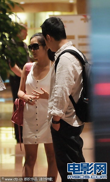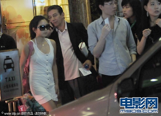 何潔黑超遮面與異性海聊 白色背心裙顯臃腫