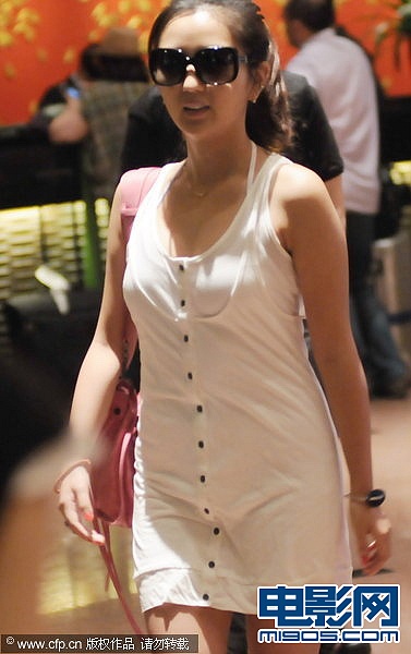 何潔黑超遮面與異性海聊 白色背心裙顯臃腫