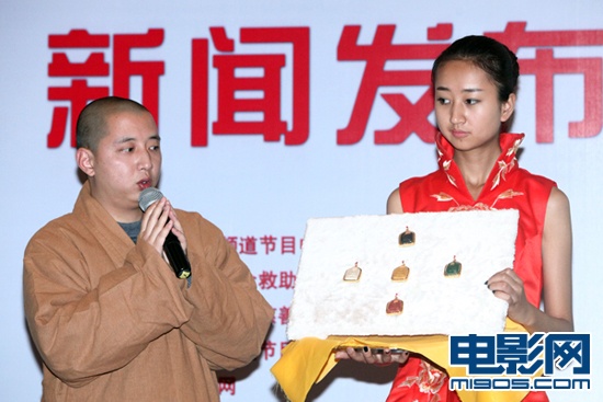 現(xiàn)場一共公布了12件拍品,其中由電影《新少林寺》劇組捐贈的一套“五方五佛”意義非凡——這組“五方五佛”由少林寺方丈恭制,五岳取石取土,并融長江黃河之水,經(jīng)過六十一位國內(nèi)外高僧七七四十九天開光而成。成龍也捐出了“騰龍椅”和成龍、威爾史密斯共同簽名的“龍制作——手帕”。此外還有電影《通天帝國》劇組捐贈的,由導(dǎo)演徐克、主演劉德華現(xiàn)場揮毫而就的書法作品“通天帝國”;一代武打巨星