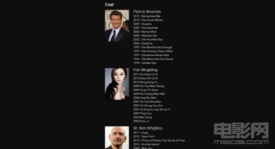 官網(wǎng)公布的主演陣容中,范冰冰位列第二