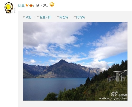 姚晨微博曬新西蘭風(fēng)景照