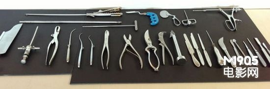 片場照上是鉗子、鑷子、刀等用途不明的器械