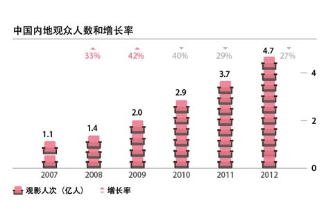 中國(guó)內(nèi)地觀眾人數(shù)和增長(zhǎng)率