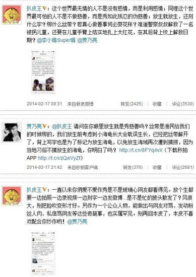 李小璐這對(duì)甜蜜夫妻從結(jié)婚以來(lái)一直喜愛在微博上曬出各種恩愛照,親密程度不亞于一對(duì)新婚燕爾。近日,李小璐與賈乃亮攜家人飛赴三亞度假,享受陽(yáng)光海岸的閑憩,但賈乃亮?xí)癯龅囊粡埛派鸀觚數(shù)恼掌瑓s引來(lái)網(wǎng)友的非議。而賈乃亮護(hù)妻心切便發(fā)微博與知名加V娛評(píng)人網(wǎng)掐起來(lái),引得網(wǎng)友紛紛圍觀。