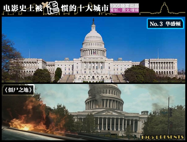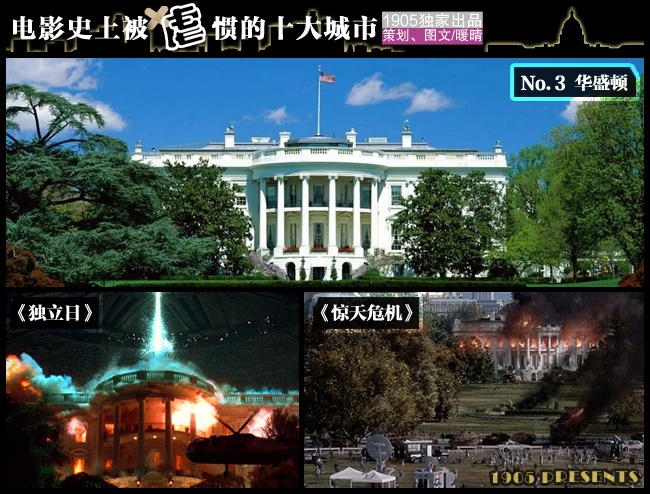 《獨立日》中外星飛船一瞬間就轟爛了白宮和國會,之后很多好萊塢災難片更是熱衷于破壞這兩個標志性建筑。導演
