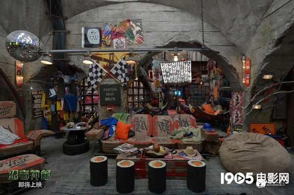 在最新曝光的神龜下水道之家劇照中,可以看到由數(shù)十個(gè)顯示頻組成的監(jiān)控室,布滿便攜式錄音機(jī)的整面墻壁,滑板車拼裝而成的滾動(dòng)座椅,披薩包裝盒組裝成的沙發(fā)等等,不但有高科技設(shè)備還有撲面而來(lái)的復(fù)古氣息,當(dāng)然這里的一切都是神龜們DIY的杰作,而且?guī)缀醵际菑U物再利用,誰(shuí)說(shuō)一個(gè)人的垃圾不能成為另一個(gè)人的寶貝?神龜們變廢為寶的能力令人刮目相看。當(dāng)然這些都是電影中的情節(jié),在影片拍攝過(guò)程中作為重要場(chǎng)景之一的下水道之家成為制作團(tuán)隊(duì)工作的重點(diǎn)。