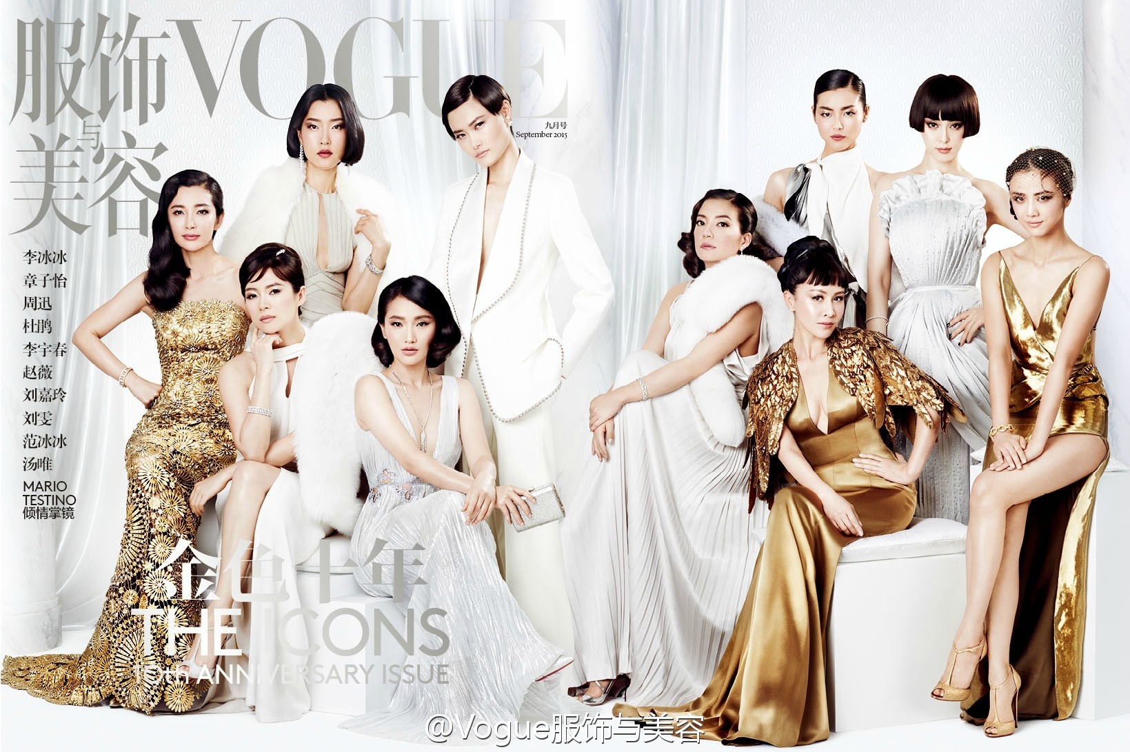 左起:李冰冰、章子怡、杜鵑、周迅、李宇春、趙薇、劉嘉玲、劉雯、范冰冰、湯唯