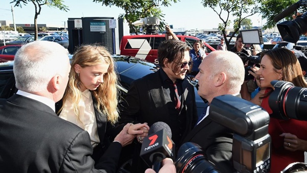 1905電影網(wǎng)訊 澳大利亞時間2016年4月18日,約翰尼·德普的嬌妻星艾梅伯·希爾德涉嫌偷運愛犬入境案在澳大利亞昆士蘭黃金海岸開庭,約翰尼·德普以證人的身份陪同妻子出庭。