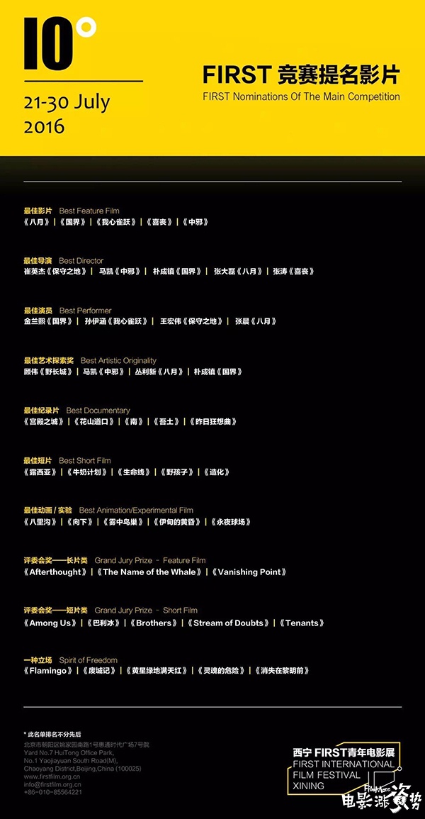 說(shuō)完此次影展的前瞻亮點(diǎn)后,資勢(shì)君也把本屆FIRST完整的競(jìng)賽提名名單貼出來(lái),大家可以進(jìn)一步了解影展的獎(jiǎng)項(xiàng)設(shè)置和提名影片概況。