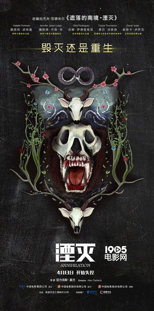 共5張1905電影網訊 2018北美開年口碑力作,由亞歷克斯·嘉蘭執(zhí)導,奧斯卡影后娜塔莉·波特曼領銜主演的好萊塢科幻驚悚大片《湮滅》即將于4月13日全國上映。今日,電影發(fā)布了一張“圖騰版”海報,體現了其強烈的風格化美學。