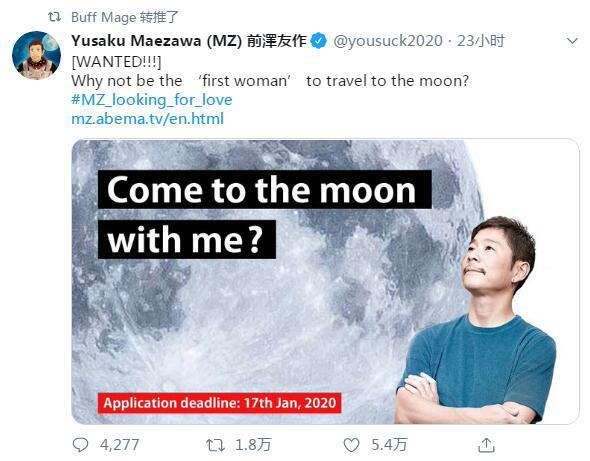 埃隆·馬斯克也在推特上轉(zhuǎn)發(fā)了前澤友作的“征婚廣告”,助其一臂之力。