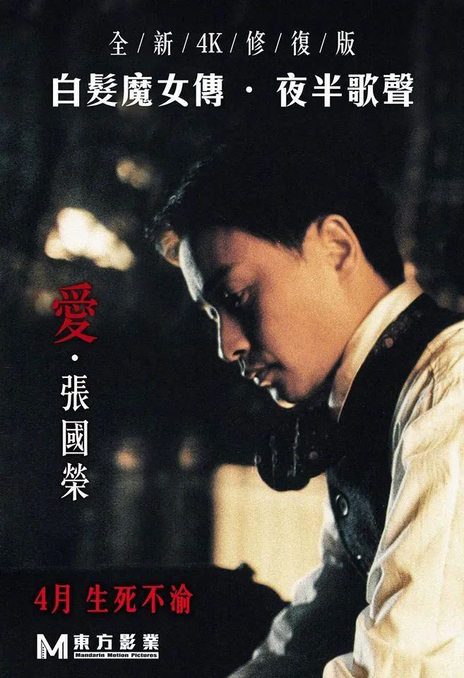 據(jù)報道,由張國榮主演、于仁泰執(zhí)導的《白發(fā)魔女傳》、《夜半歌聲》兩部電影作4K修復后,將在今年4月,重新搬上香港大銀幕,用以紀念主演張國榮逝世17周年。其中,張國榮、林青霞主演的《白發(fā)魔女傳》將于4月1日率先上映,張國榮、吳倩蓮主演的《夜半歌聲》會在4月8日上映。