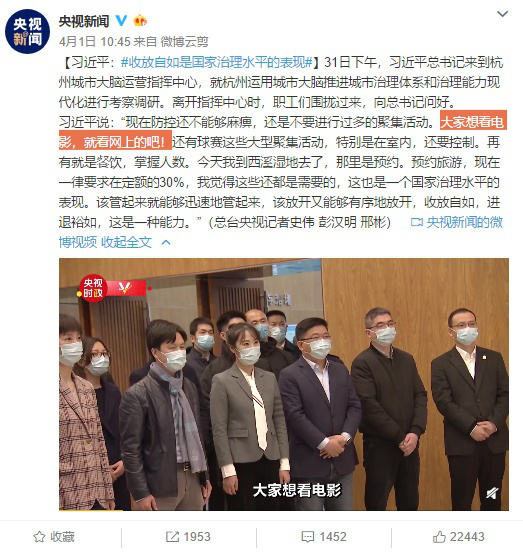 “現(xiàn)在防控還不能夠麻痹,還是不要進(jìn)行過(guò)多的聚集活動(dòng)。大家想看電影,就看網(wǎng)上的吧!”