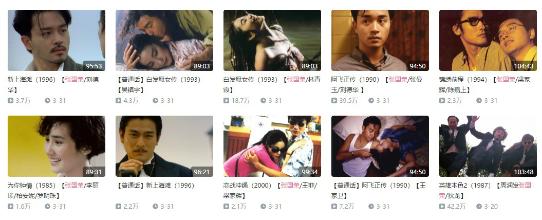 昨天上午,這兩句話在網(wǎng)絡(luò)上被廣泛傳播,引發(fā)了很多影視行業(yè)從業(yè)者的討論——繼上周影院復(fù)工工作暫停后,關(guān)于影院何時(shí)才能正式復(fù)工的探討就從未停止。對(duì)此,有相關(guān)影院管理者告訴毒眸(微信ID:youhaoxifilm):從當(dāng)下的情況來(lái)看,五一前想正式復(fù)工可能有些過(guò)于樂(lè)觀了。?影院遲遲不復(fù)工,喜愛(ài)電影的用戶只能將目光轉(zhuǎn)移到線上。毒眸注意到,近期頭部視頻平臺(tái)雖然沒(méi)有新的院線大片可播,卻在自制、獨(dú)播網(wǎng)絡(luò)電影領(lǐng)域頻頻發(fā)力;而另一邊,以B站為代表的視頻平臺(tái)第二梯隊(duì)成員、以抖音為代表的短視頻平臺(tái),也都開(kāi)始借此機(jī)會(huì)發(fā)力,擴(kuò)充自己的電影庫(kù),豐富自己的長(zhǎng)視頻資源。?3月31日,也就是張國(guó)榮忌日的前一天,“嗶哩嗶哩電影”這一B站的電影官方賬號(hào),放出了《白發(fā)魔女傳》《為你鐘情》《新上海灘》《阿飛正傳》等數(shù)部由張國(guó)榮主演的影片。