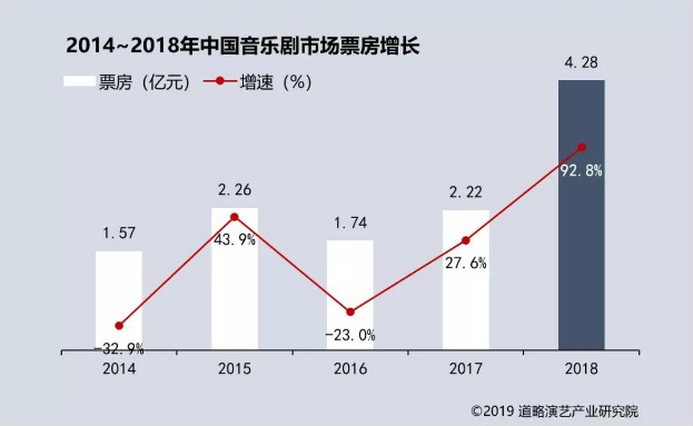《2018年中國(guó)音樂劇市場(chǎng)發(fā)展報(bào)告》指出,2018年中國(guó)音樂劇的票房增速達(dá)到92.8%,其中引進(jìn)劇目票房占比高達(dá)63.2%。不少從業(yè)者都認(rèn)為,未來隨著國(guó)內(nèi)演出市場(chǎng)進(jìn)一步成熟,與海外合作日趨緊密,引進(jìn)劇目在中國(guó)市場(chǎng)的空間也將越來越大。
