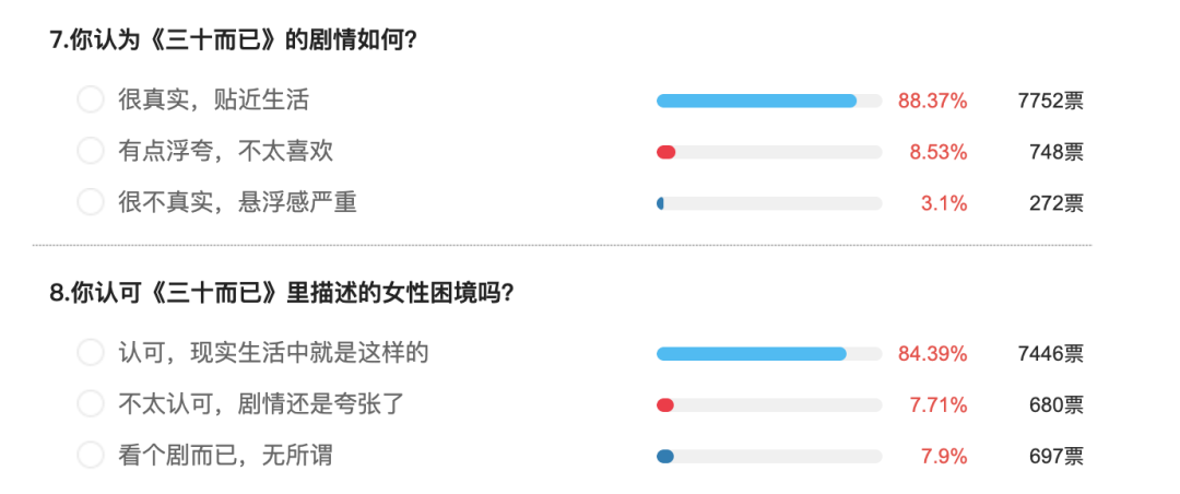 你看《三十而已》這部劇了嗎?評價如何?歡迎繼續(xù)參與調(diào)查~