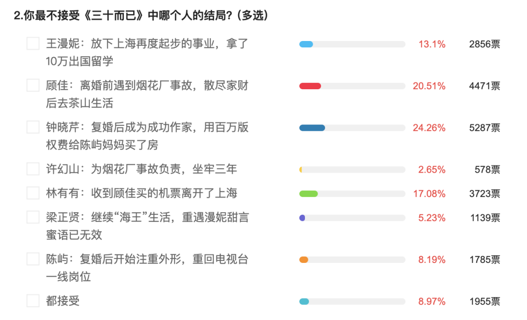 8月3日,電視劇《三十而已》開啟超前點(diǎn)播,結(jié)局已曝出,F(xiàn)eng向標(biāo)《三十而已》結(jié)局向調(diào)查已吸引超1.2萬人投票。