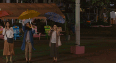 電影的高光時刻,是一個雨天里,東昇平像幾十年前一樣,帶著三把傘去游樂園接妻子和女兒回家。
