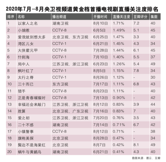 面對(duì)疫情考驗(yàn),2020年暑期檔依舊精彩,多部收視、話題、口碑俱佳的優(yōu)質(zhì)劇活躍熒屏。隨著國(guó)產(chǎn)劇質(zhì)量逐步提升,觀眾收視偏好也在發(fā)生轉(zhuǎn)變,節(jié)奏緊湊、劇情飽滿、探討現(xiàn)實(shí)成為今年暑期熱劇的共性,市場(chǎng)的理性選擇也將助推行業(yè)良性發(fā)展。
