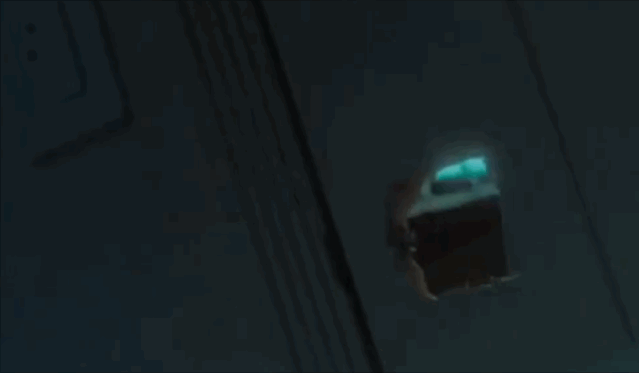 開篇幾分鐘接連反轉(zhuǎn)將恐怖氛圍渲染到位,尤其是小女孩躲在房間里,假父母弄壞門把手,從門洞里伸出一只手的場(chǎng)景,實(shí)在有些瘆人。