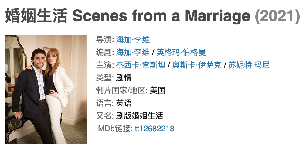 本劇根據(jù)伯格曼同名原作改編,男主角是勞模姐的老同學(xué)奧斯卡·伊薩克,女主原定米歇爾·威廉姆斯,后因檔期沖突退出,由勞模接手。