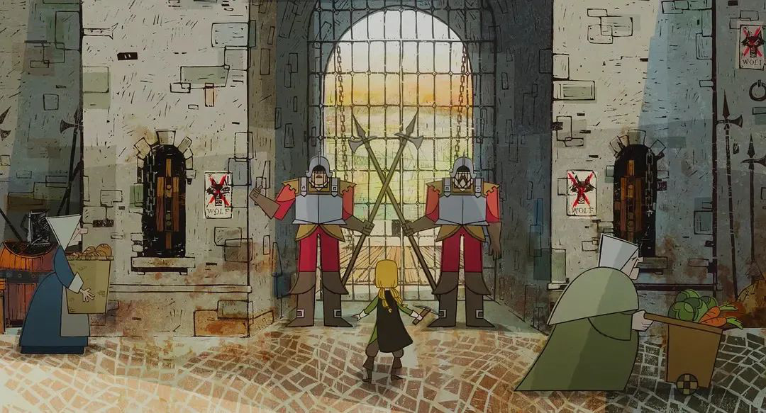 一邊是父親為代表的反反復(fù)復(fù)的說教——“待在家里”“不許出門”“狼群是危險的”“服從領(lǐng)主的命令”;