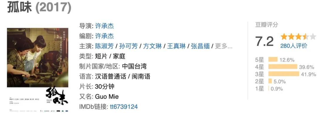 就是這部《孤味》,相比于之前一堆口碑不盡如人意的臺片,本片豆瓣評分卻始終保持在8.0分,可以說是十分驚喜了。