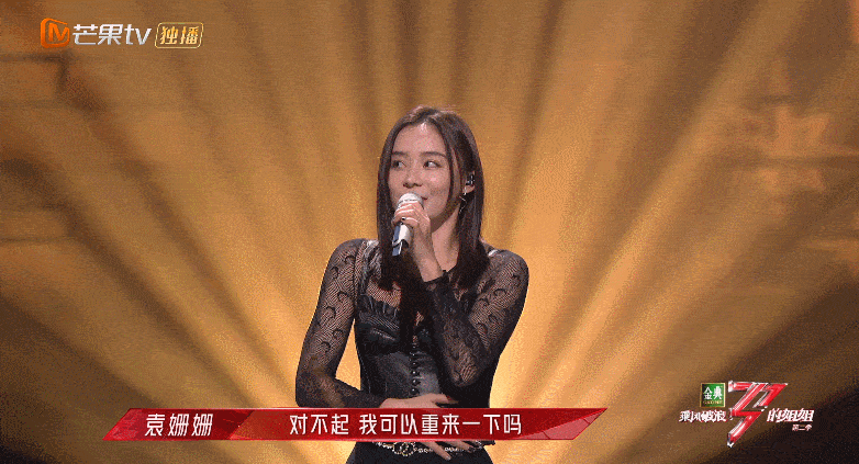 初舞臺時,一開始就明確只有一次表演機會,袁姍姍在臺上唱歌卻忘了詞。后她要求“再來一次”,在沒有得到回應的情況下,她沒有選擇堅持完成表演,而是安靜地等待結(jié)束。