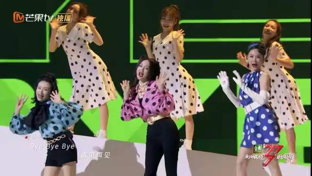 楊鈺瑩、程莉莎、董璇等人的組合整體年紀偏大,她們表演《所有人都在玩手機》,就是希望能夠走可愛風讓大家眼前一亮。不過姐姐們穿上五顏六色的大波點服裝強行可愛,還是有些尷尬的。