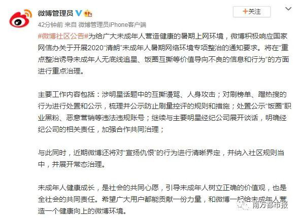 但后來,發(fā)生的諸如蔡徐坤周杰倫打榜風(fēng)波以及肖戰(zhàn)事件等,也都使得外界對于粉絲為明星打榜的瘋狂行為進(jìn)行反思,而新浪微博也在去年開始要整治“打榜亂象”,稱將重點(diǎn)整治誘導(dǎo)未成年人無底線追星、飯圈互撕等行為。