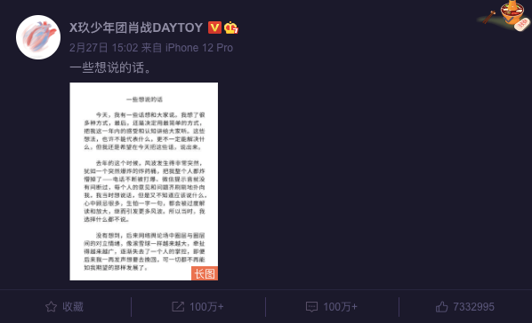 或者本屆微博之夜king的肖戰(zhàn),在之前發(fā)布的長微博就提到了明星引導(dǎo)的重要性。在長微博中,肖戰(zhàn)提到他無法用“管理”這樣的詞匯來定義他和粉絲之間的關(guān)系,現(xiàn)實(shí)確實(shí)也是這樣,有時(shí)候大家會感慨連自己都很難自律,有什么資格來“管理”粉絲呢,所以明星與粉絲之間更重要的是“引導(dǎo)”……